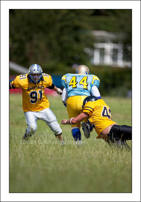 On Sunday 12th July the Watford Cheetahs had their final home game of the season. They took on the Bedfordshire Blue Raiders. In an exciting match they came out eventual losers at 22 - 14, but gave the Blue Raiders their hardest challenge so far this season. br> br>All shots taken on the Canon 5D MkII with 600mm F4 or Canon 20D with 20-200 f2.8 IS.