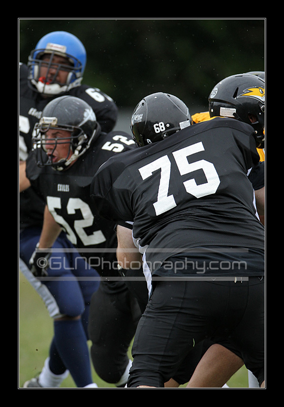 It wasn't the best display Watford have put on by a long chalk, they were beset with stupid penalties & easy giveaways including 2 interceptions and at least 3 fumble losses. Unfortunately, they were unable to gain the upper hand & the Exiles ran out 18 - 0 winners giving them the number one spot in the division with 3 games to go.
