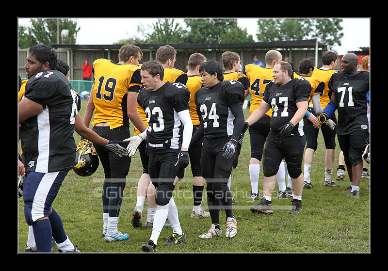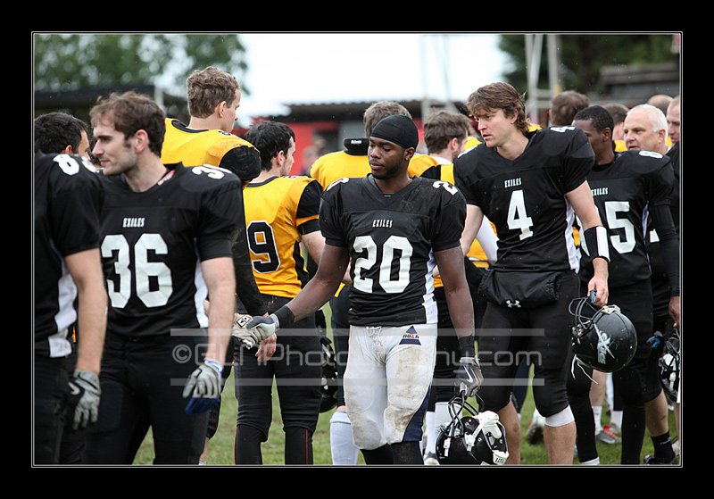 It wasn't the best display Watford have put on by a long chalk, they were beset with stupid penalties & easy giveaways including 2 interceptions and at least 3 fumble losses. Unfortunately, they were unable to gain the upper hand & the Exiles ran out 18 - 0 winners giving them the number one spot in the division with 3 games to go.