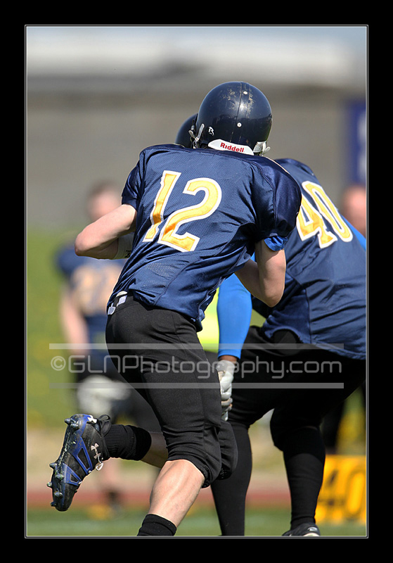 There were two titles played, the first was for the BUAFL Challenge Trophy between the Cardiff Cobras (in red) & the Hull Sharks (in blue).