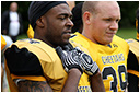 The Exiles have a great setup, nice ground, good flat 100yd pitch, food, programmes, mic'd up refs and a game announcer.